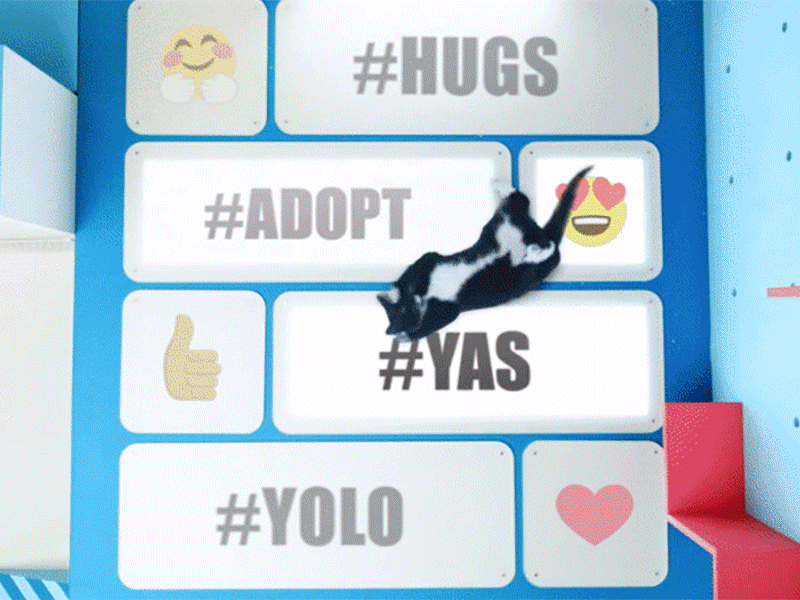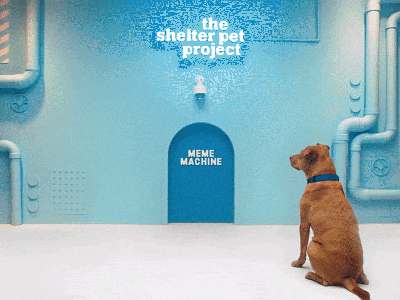 A social campaign created for the Ad Council's Shelter Pet Project, built around "The Meme Machine," a life-size interactive set where shelter pets could literally generate their own memes: stepping on a board rotated an image, licking an emoji placed it over the image, and rolling around created a hashtag. The campaign used these pet-generated memes to flood social platforms around fake holidays like "Boss Appreciation Day," with the ultimate goal of encouraging adoption.